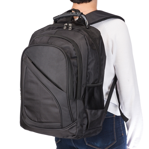Mochila em 600D com bolso frontal e bolsos laterais com zíper. 24...